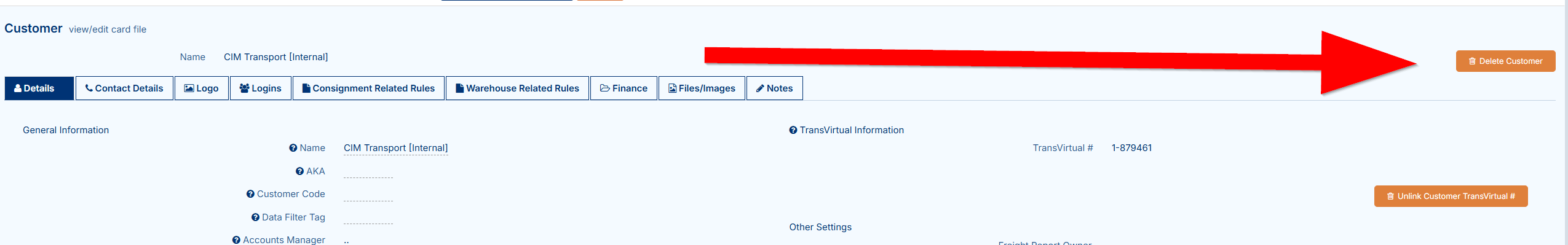 Use this article to add, edit, import, delete, or configure customer cards in Transvirtual.