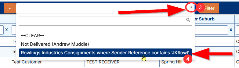 For example, there might be something you wish to search for often such as data for a particular customer name and sender reference - you want to return consignment results matching these criteria.