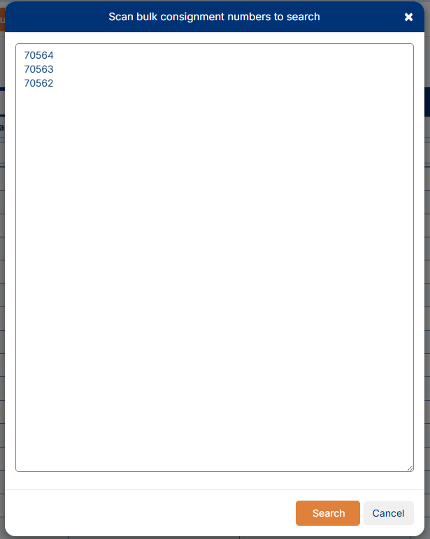 Search for specific consignments by entering consignment numbers.