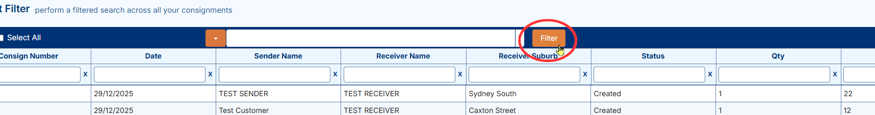 This guide explains how to filter, search, and manage consignments efficiently.