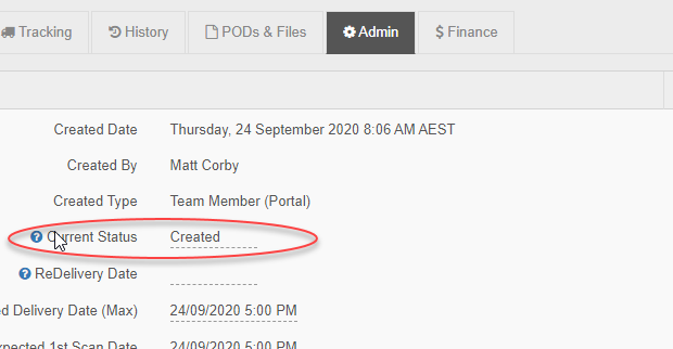 This will show information about the consignments details, current status, location and a scan history.