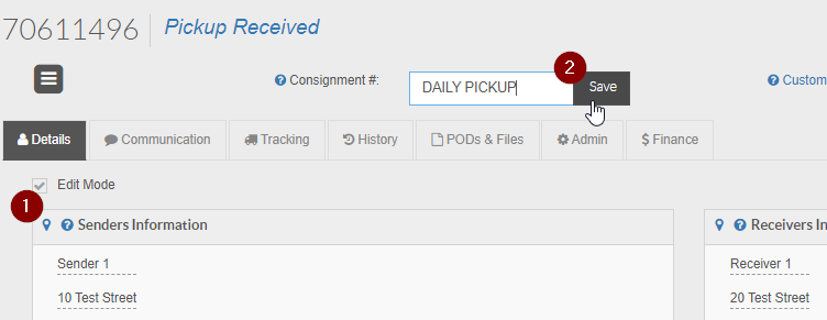 This process allows you to add a new receiver to a consignment after its created and save some of the existing information.