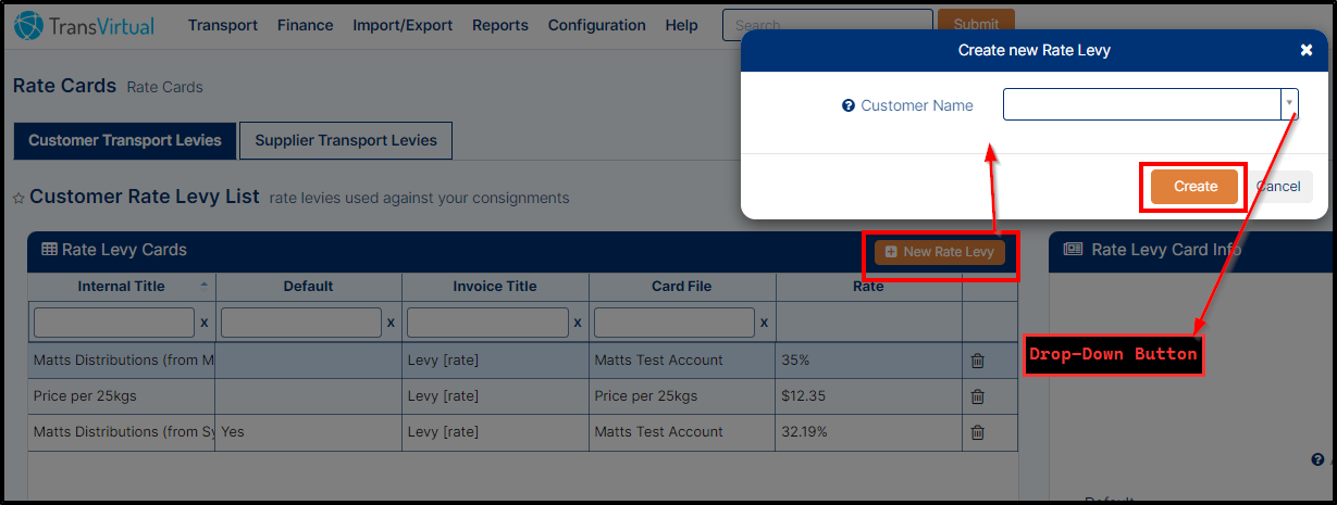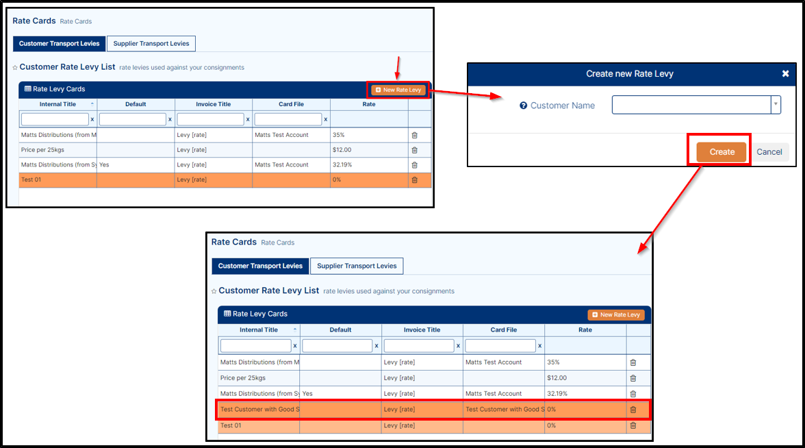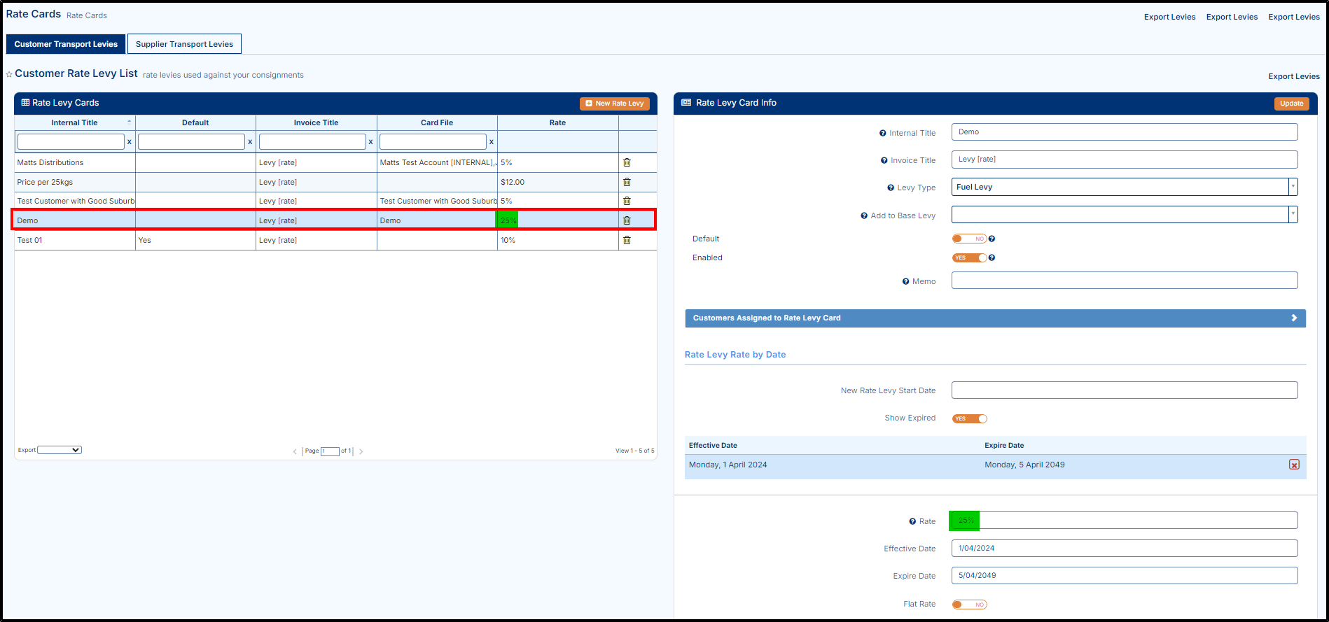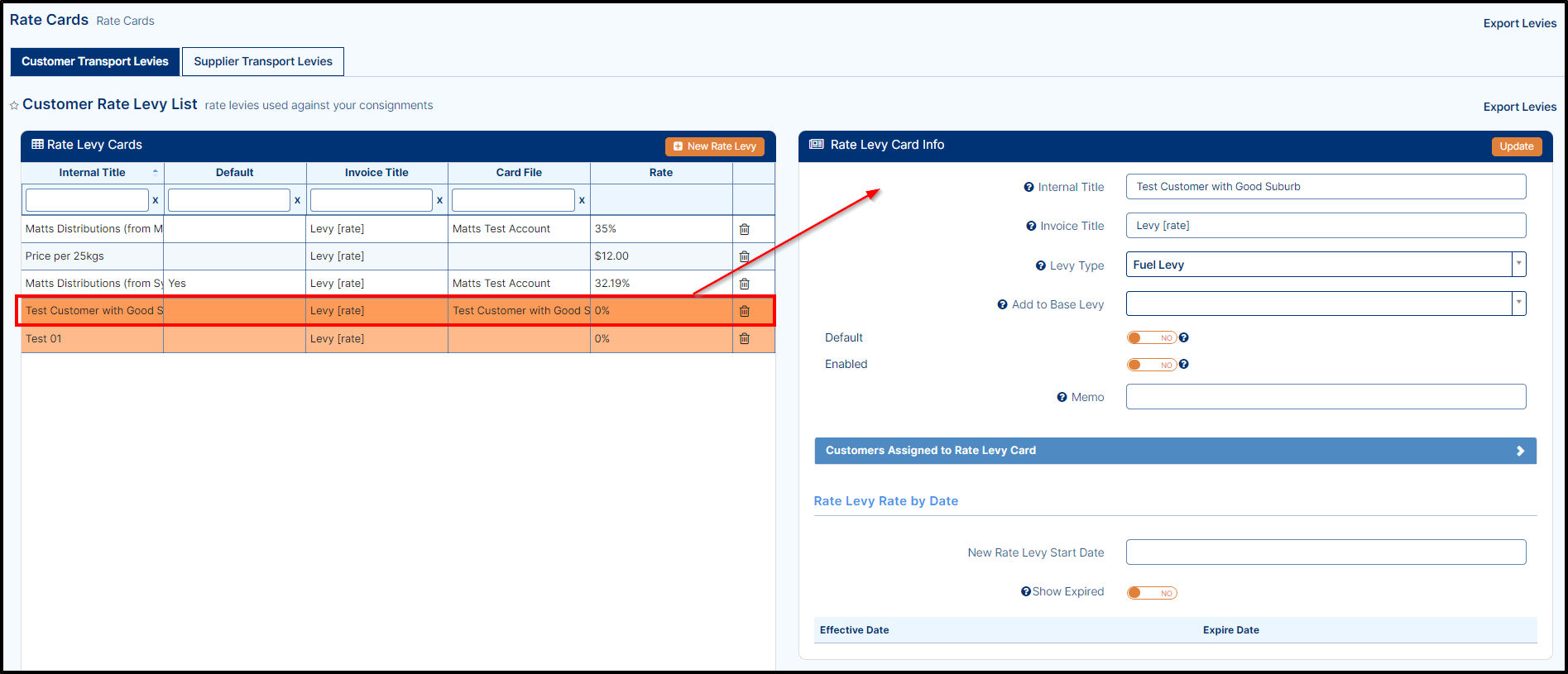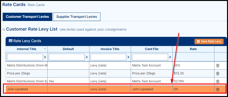 1. On Rate card page, you will need to create a new levy and assign it to an applicable customer to the levy as shown below.