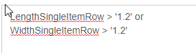 10. The result will be in the examples as below, in this case the system has included the word 'and' meaning that both the lenght and width will need to be over 1.2 for this to apply. We can change this word to 'or' if desired meaning only one of the dimensions will need to be greater to apply.