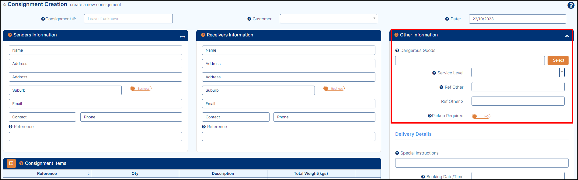 1. You can add Dangerous Goods to Consignment either while creating a new consignment or can add at any existing consignment also.