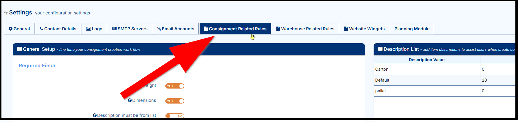 1. In Transvirtual, you have the ability to review any pickup type consignments that have been marked as Futile. To do this, first you will need to enable the below setting, which is located under Configuration > General > Global Setup then select the Consignment Related Rules tab: