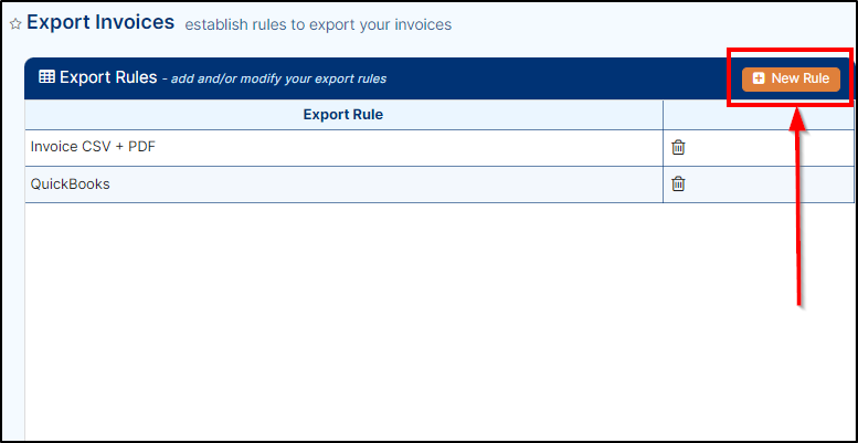 1. To create a new rule, on Export Invoices page, click on New Rule as shown below.