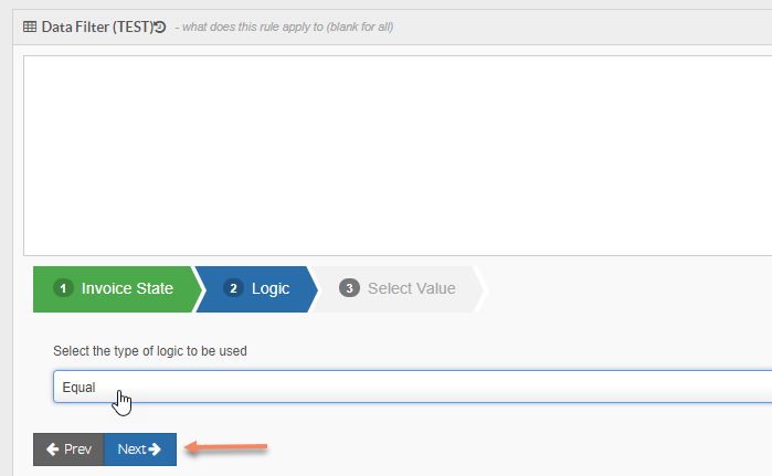 This then populates the data filter with the text/logic seen in the above image - this particular logic means that the rule will only apply to any invoices that get locked and approved; at which point these will flag to be sent across to your Accounts Package.