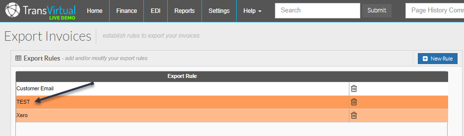 For this example we are going to create two rules; one for a customer called TransVirtual and the other for a customer called TEST customer - the purpose of these rules is that we are going to send their invoice data to account codes
