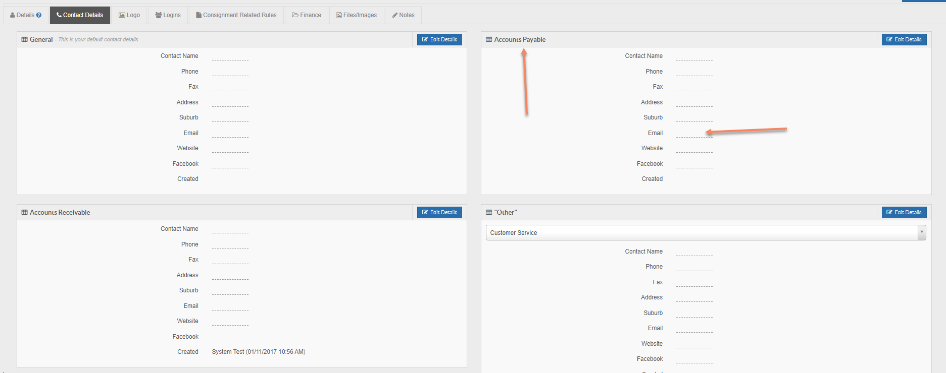 In the 'Send to Customer Contact' or the 'Send to Assigned Agent Contact' fields you can select a contact to email this information to. If you choose Accounts Payable for the Customer Contact, for example, this would email to the email address listed under Accounts Payable in the related Customer Card: