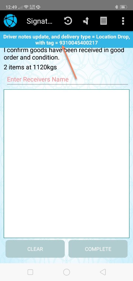 4. From here, load up a consignment as per usual and go through the delivery process as you normally would until you reach the signature page. When you arrived here you have the option to scan a barcode either on the signature page itself or via the delivery issues page: