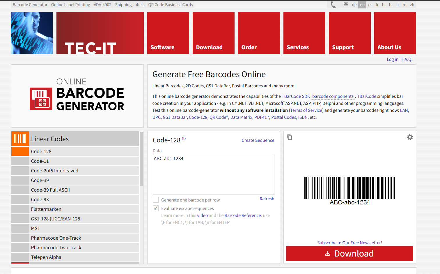 https://barcode.tec-it.com/en/Arriving at the website you will see a screen similar to this: