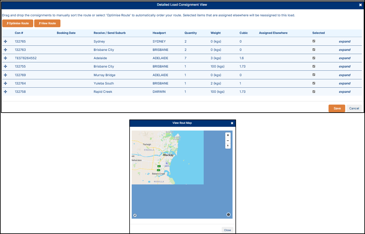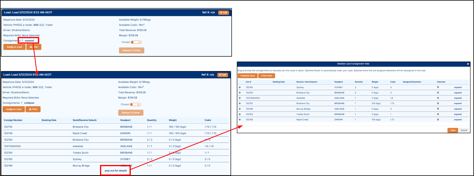 NOTE: A load is a collection of consignments assigned to a specific driver and vehicle