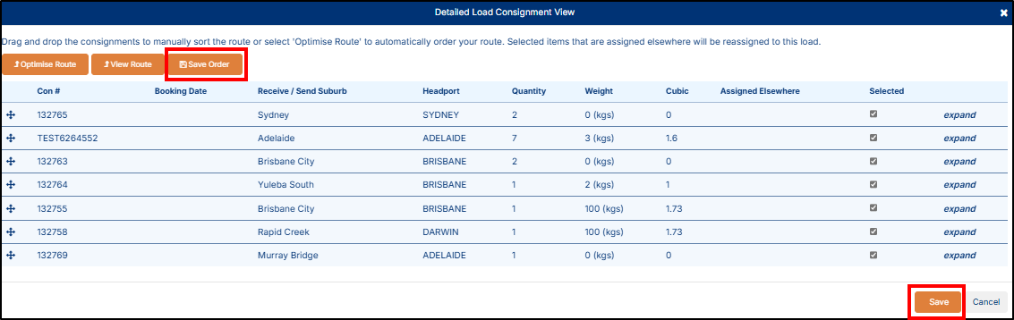 - Assign consignments to loads