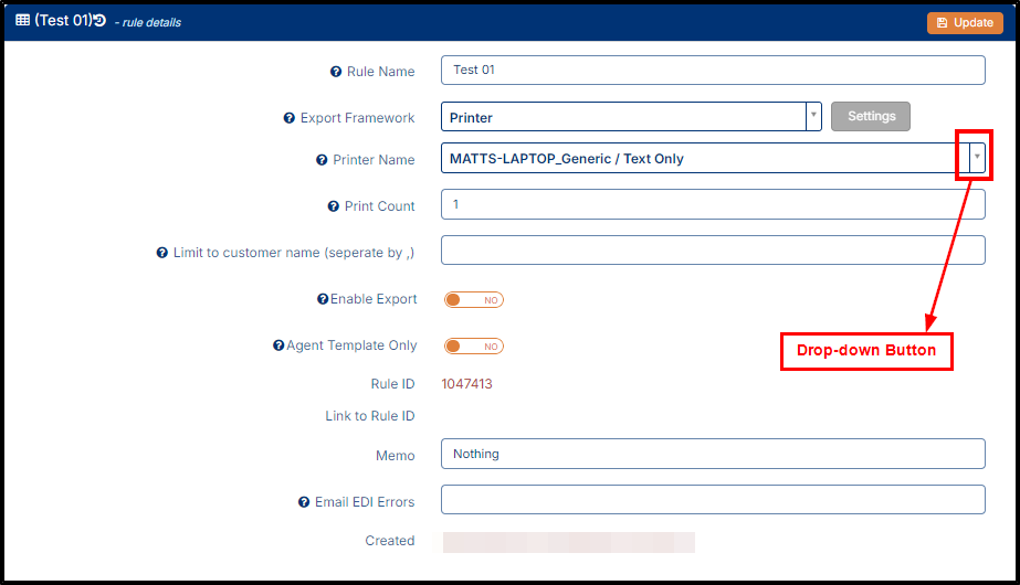 b. Export Framework: This should also be configured from when the rule was created. In this example we will use Printer in Export Framework.
