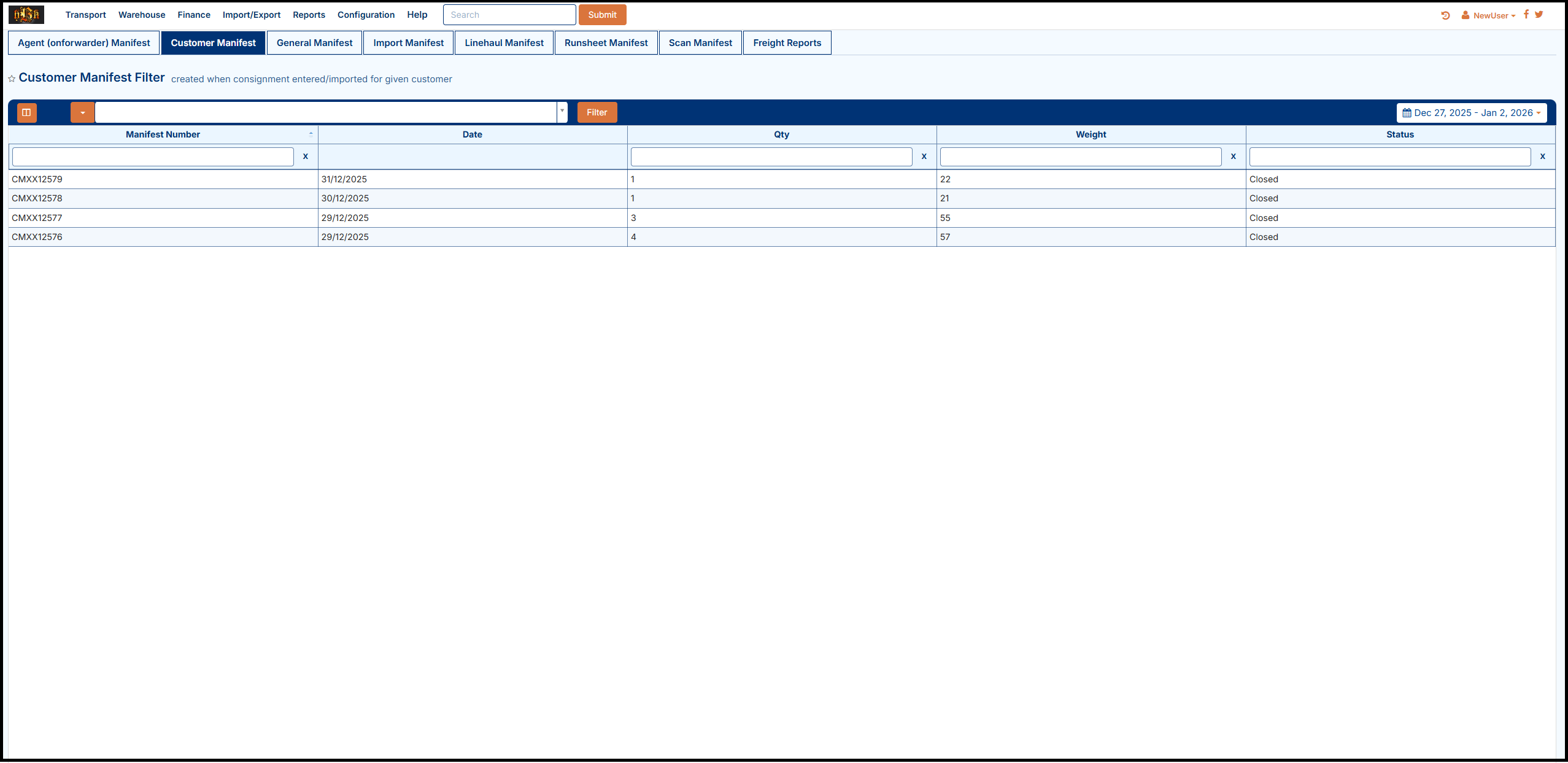 LinehaulManifest,1xvehicleAgentLinehaulManifest,1xvehicleLinehaulManifest,2xvehicleAgentLinehaulManifest,2xvehicleLinehaulManifest,3xvehicleAgentLinehaulManifest,3xvehicleUse a dedicated rate card to record linehaul costs and list them against consignments.