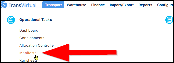 Navigate to Transport → Operational Task → Manifests