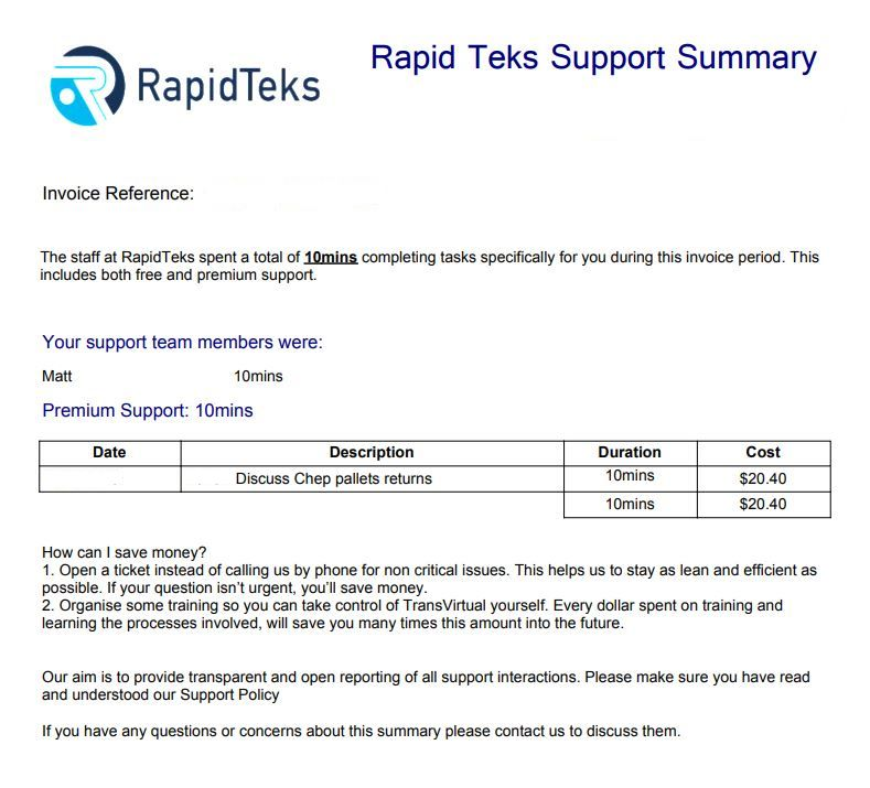 - Our support policy can be found linked in the footer of most pages or accessed here https://www.transvirtual.com.au/Public/Policy/Support.